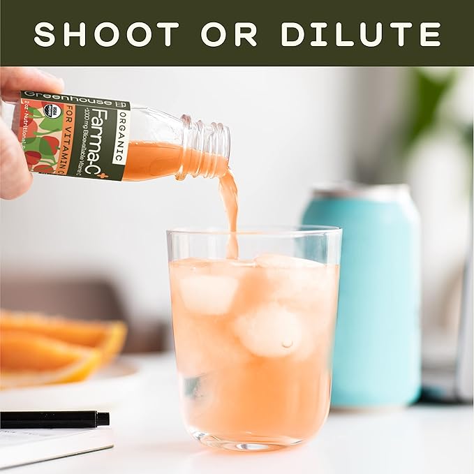 Greenhouse Juice Organic Farma-C+ Wellness Shots Vitamin C Immune Shot Cold-Pressed with Orange, Acerola Cherry, Sea Buckthorn Berry and Fermented Echinacea | Vegan & Gluten-Free (2 Oz, Pack of 12)