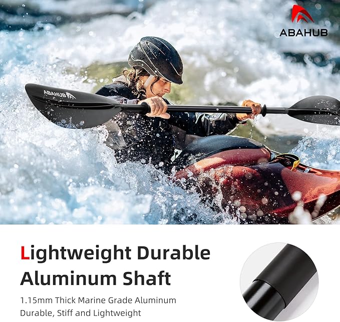 • MADE to LAST: Made of premium quality 1.15mm thick, 29mm diameter aluminum alloy shaft, and fiberglass reinforced polypropylene blades, total weighs 38oz (1075g). This kayak paddle is impact and erosion resistent, thus for great durability. It’s perfect for beginner and intermediate kayakers.