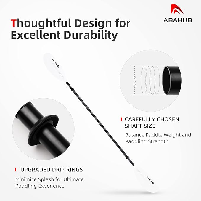 - MADE to LAST: Made of premium quality 1.15mm thick, 29mm diameter aluminum alloy shaft, and fiberglass reinforced polypropylene blades, total weighs 38oz (1075g). This kayak paddle is impact and erosion resistent, thus for great durability. It’s perfect for beginner and intermediate kayakers.
