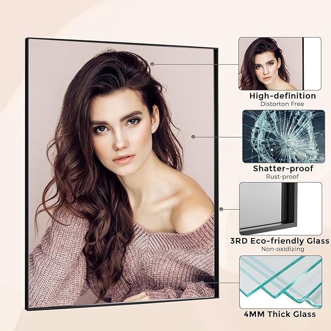 - ❤️【Premium Material】- Made of premium aluminum alloy and imported mirror materials, the mirror is more durable than those made of wood or rubber. The mirror edge is protected by the Aluminum frame from hurt and ensure beauty.