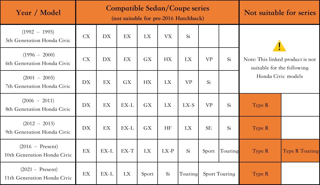 - 【Suitable for】— Custom fit for Honda Civic Sedan/Coupe (1991-2025). Come with a large enough portable bag to store your cover when you do not use