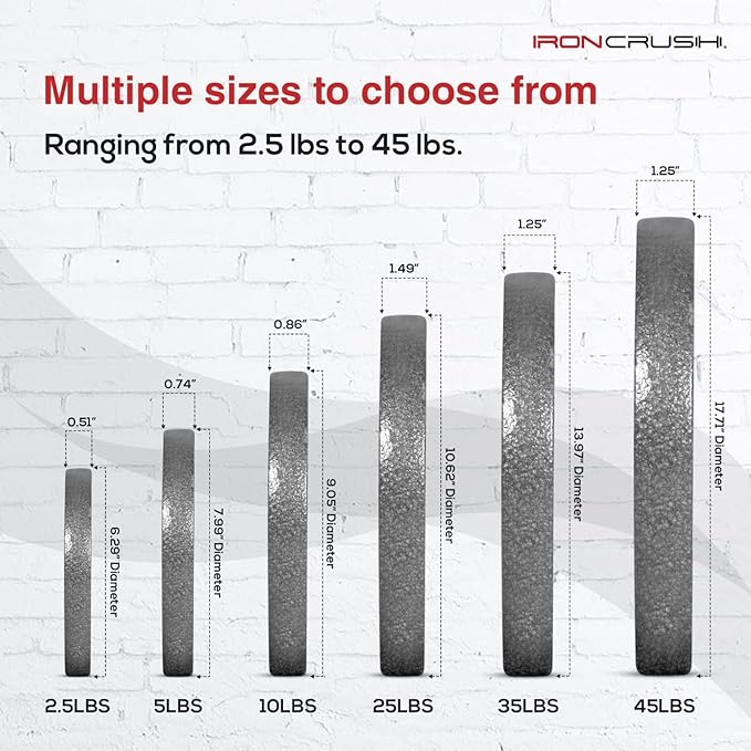 - HEAVY DUTY OLYMPIC WEIGHTS - Our cast iron weight set is made with the superior hammertone finish and solid cast iron for durability. They're smooth, don't corrode, and can endure the most intense workouts.
