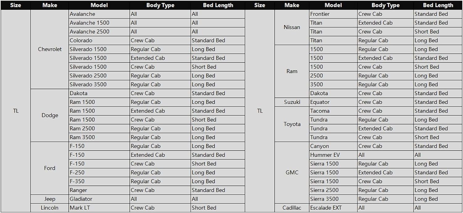 - Material 300D Oxford : Vehicle Service Type Truck, Cadillac Escalade EXT, Chevrolet Colorado Avalanche Silverado 1500/2500/3500,Dodge Dakota, Ford F150/250/350 Maverick Ranger, GMC Canyon Sierra 1500/2500/3500, Ram 1500/2500/3500, Hummer H3T, Nissan Frontier Titan, Suzuki Equator, Toyota Tacoma Tundra, Honda Ridgeline, GMC Hummer EV Pickup, Jeep Gladiator Truck, Cadillac Escalade EXT, Chevrolet Colorado Avalanche Silverado 1500/2500/3500,Dodge Dakota, Ford… See more