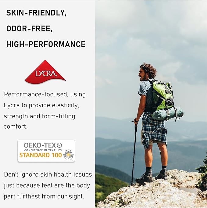• Preferred Oeko-Tex Standard 100 skin-friendly material; Sole made of combed cotton and tech-dry yarns for moisture wicking, non-slip, anti-odor and durable