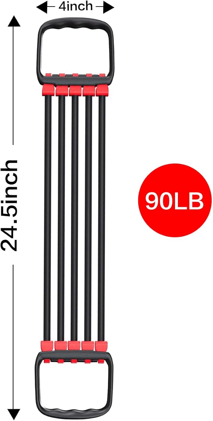 - Customizable Resistance Levels: With 6 removable rubber tubes, our chest exerciser allows you to adjust the resistance according to your fitness level. Whether you're a beginner or a professional athlete, this training set offers 5 different levels of resistance, ranging from 30 to 90 Lbs. This versatility ensures that you can continuously challenge and improve your chest, arm, leg, shoulder, and back muscles.