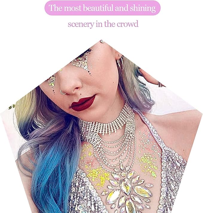 - 【Laser Flash Powder】This body glitter is made of holographic glitter, which is light and durable. The Color and luster of the laser sequins vary with the angle of view. Make you stand out from the crowd.