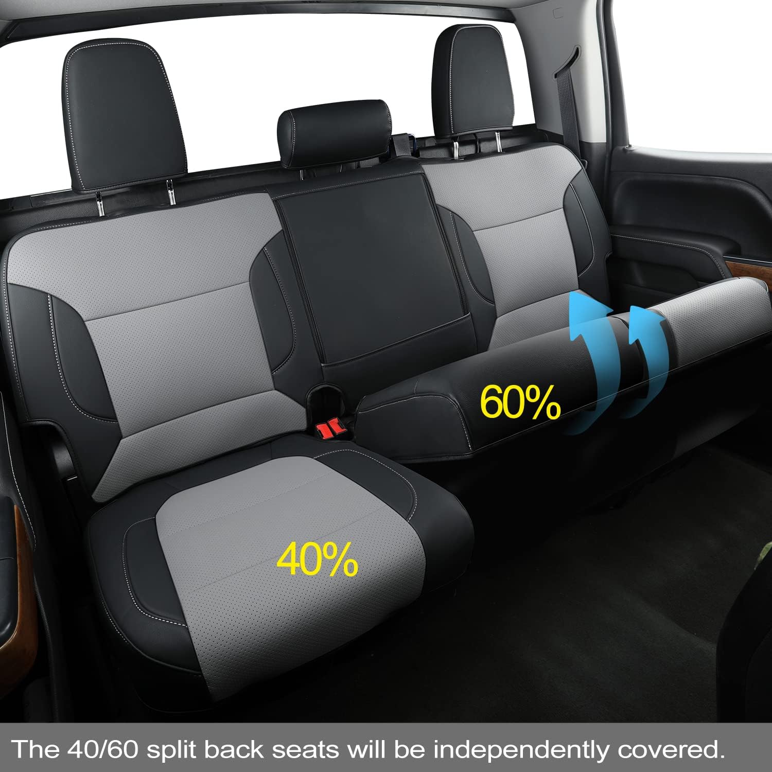 LUCKYMAN CLUB Custom Fit Seat Covers for 2019-2024 2025 Chevy Silverado Sierra 1500 Crew Cab, 2020-2024 2025 Silverado Sierra 2500 3500 Crew Cab (Black&Gray)