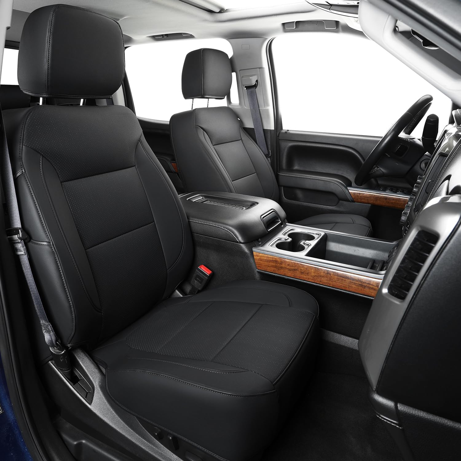 LUCKYMAN CLUB Front Seat Covers fit for Crew Cab/Extended Cab/Regular Cab of 2019-2025 Chevy Silverado Sierra 1500, 2020-2025 Silverado Sierra 2500 3500 (Black 2 pcs)