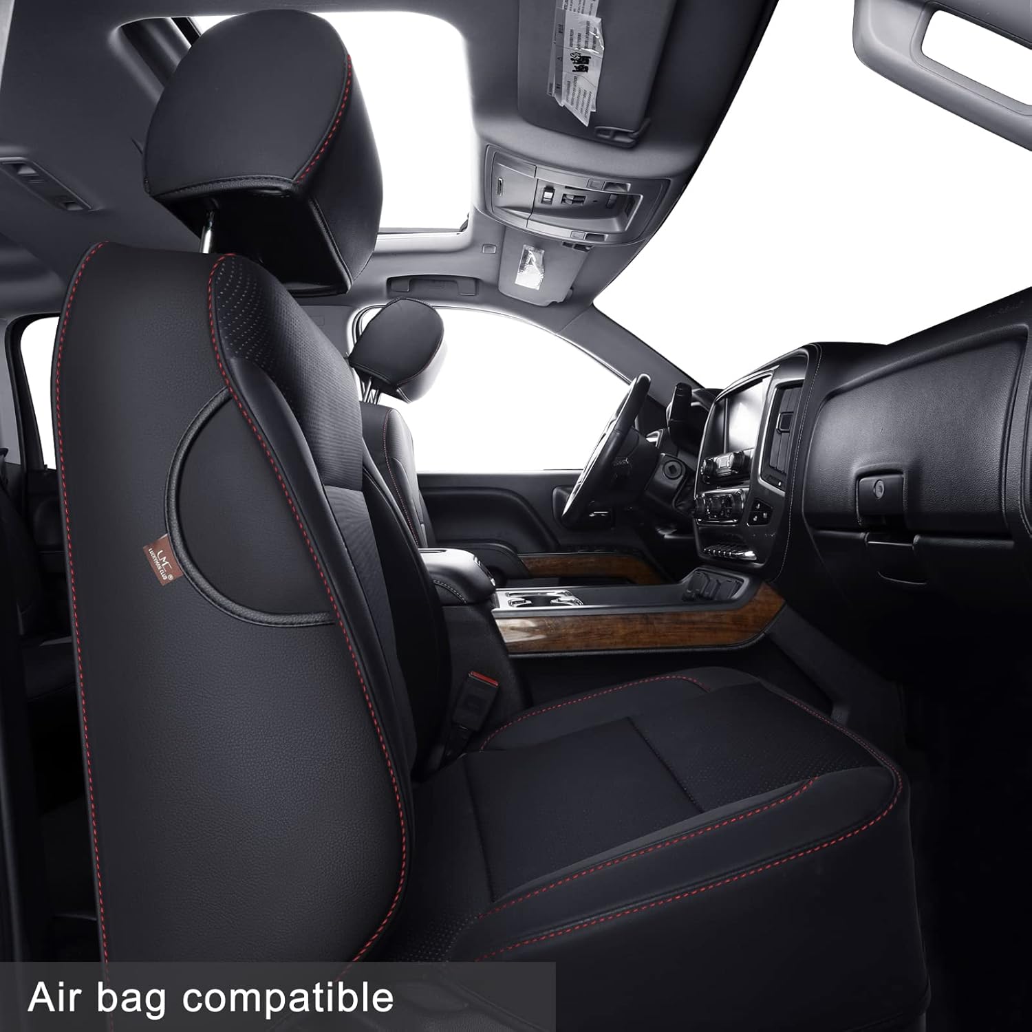 LUCKYMAN CLUB Custom Fit Seat Covers for 2014-2018 Chevy Silverado Sierra 1500 Crew Cab, 2015-2019 Silverado Sierra 2500 3500 Crew Cab (Black&Red)