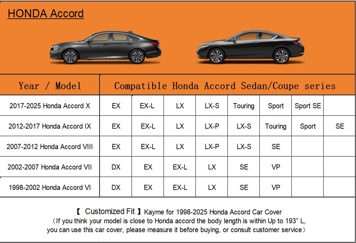 - 【Suitable for】-Customer fit for Honda Accord sedan/coupe(2001-2025). Come with a large enough portable bag to store your cover when you do not use.