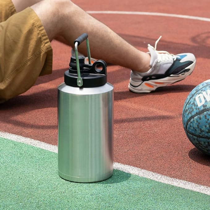- đź’§VACUUM INSULATED: Double layer vacuum insulated kettle, keeps the liquids icy for up to 48 hours or piping hot for up to 24 hours.This gallon water bottle is made of Powder-coat sweat-free technology, bottle grabbing becomes easy in time after strenuous exercise.