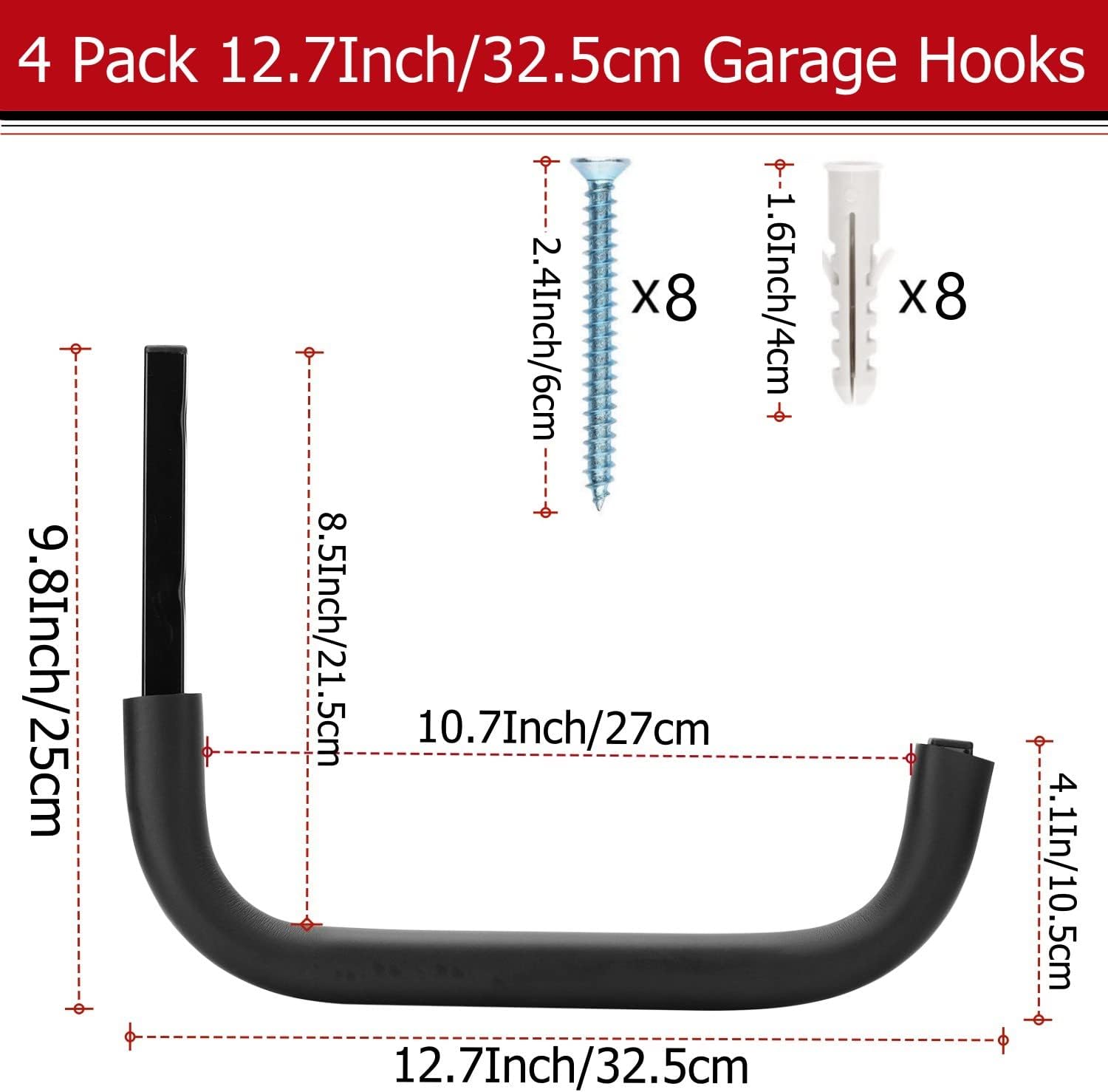 Large Garage Storage Hooks, 12.4 Inch Heavy Duty Garage Storage Organizer Wall Mount Hanging Hanger, Each Max Load 100lbs