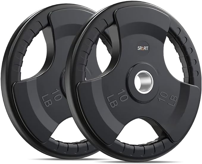 - đź’ŞFEATURE: SPART weight plates have a solid iron core and slide rubber surface. This design can protect the floor from damage and ensure enough weight when you do exercise. The strong steel ring insert can help you assembly the barbell easily. The three holes are designed for grip according to your hands and you can do weightlifting exercise with single plate as well.