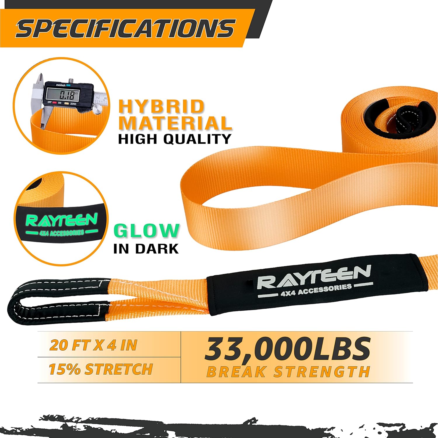 Genuine 33,000lb Xtreme Heavy Duty Recovery Tow Strap | 20ft x 4in Vehicle Tow Strap with Reflective Sleeve & Reinforced Loops | Suits for 4x4 Offroad UTV ATV Trucks Boats