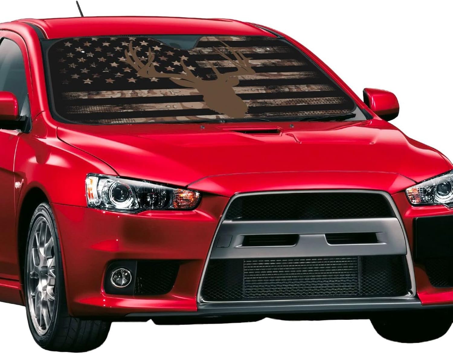 - Premium Material:Funny American flag camouflage Car Sun Shade Is Made Of Reflective aluminum foil combine with bubble material make the cooling effect is more significant.Keeps The Interior Cool and super durable.