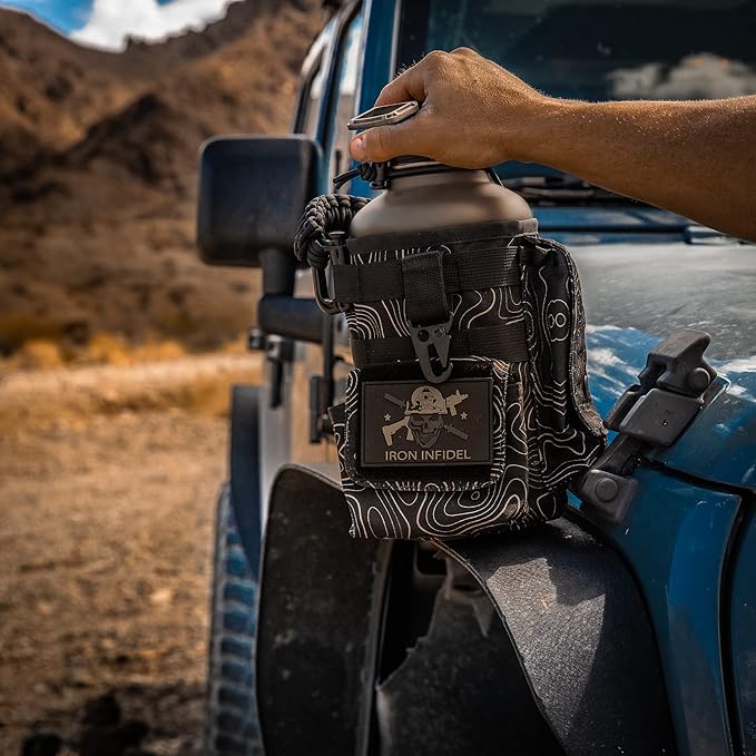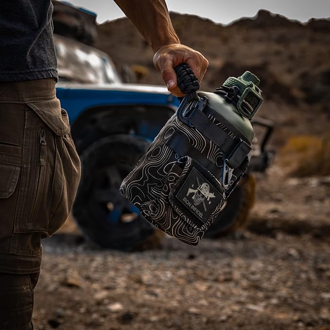 - PATENT PENDING DESIGN - This unique and original design is the only one of its kind. Iron Infidel created and patented this original design with our military, law enforcement, first responders , and hard working patriots in mind. These men and women put in long, hard days and a petite water bottle just won't cut it. Stay hydrated all throughout your hardest days, and you might as well do it with a bottle that looks cool. Grab the 21st century replacement of your old military canteen.