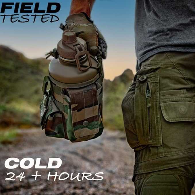 - DURABLE AND RUGGED - Made from high quality double-wall stainless steel and military grade fabrics, making this a necessary piece of your go-to gear and equipment for hiking, camping, hunting, work, or the gym.