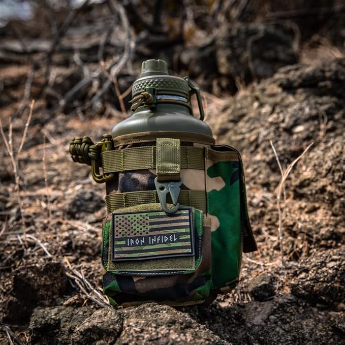 - PATENT PENDING DESIGN - This unique and original design is the only one of its kind. Iron Infidel created and patented this original design with our military, law enforcement, first responders , and hard working patriots in mind. These men and women put in long, hard days and a petite water bottle just won't cut it. Stay hydrated all throughout your hardest days, and you might as well do it with a bottle that looks cool. Grab the 21st century replacement of your old military canteen.