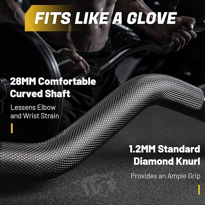 - Knurling Design: The LIONSCOOL EZ Curl Bar features a 1.2mm standard diamond knurl without being too aggressive, which provides an ample and superior grip for sweaty hands. The bar has two sections of knurling totaling 15 inches, both are fully covered through the curves. It gives you a solid grip for any movement from curls to rows.
