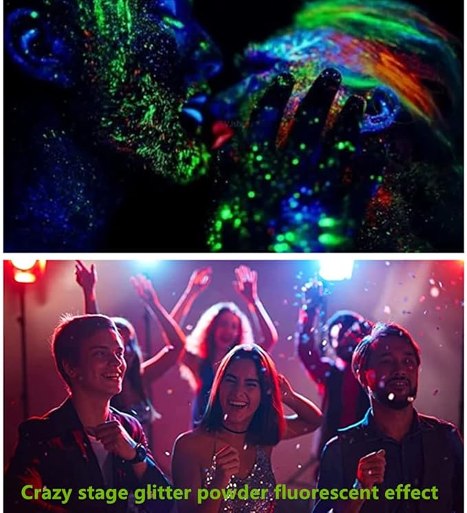 - 【UV Glitter Effect】Glow under the UV light effect in dark.Fluorescent high-quality pigments and your own DIY design can make you unique among the crowd.