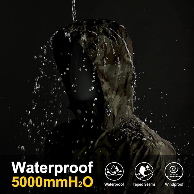 • ?�Waterproof & Breathable?‘This travel rain jacket for men performed well in windproof and waterproof, 5000mm waterproof and 5000g/m2/24hr breathable.