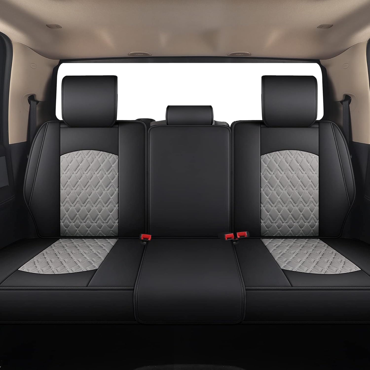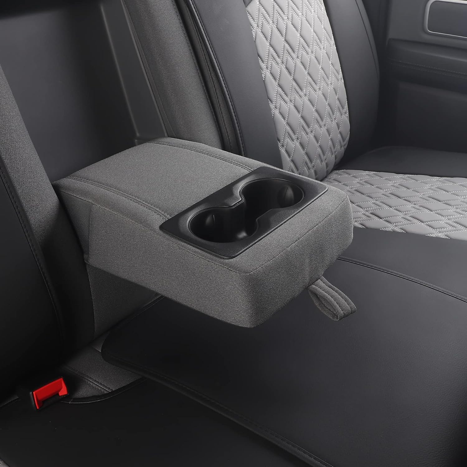 JOJOBAY Car Seat Covers for Dodge Ram,Fit Ram 2009-2025 1500/2500/3500 Pick-up Truck,Crew,Regular,Quad,Mega Cab,Waterproof Synthetic Leather Rear Seat Cover,Black-Grey