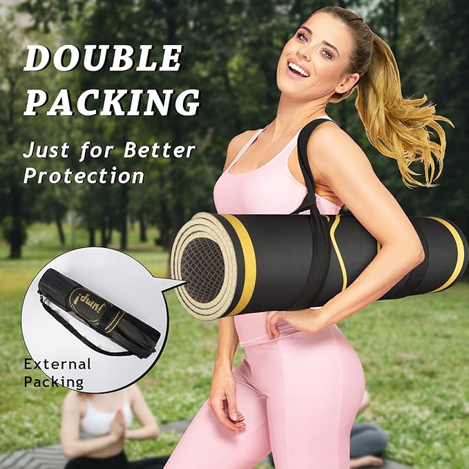 - Noise-Reduce Durable Surface: The top of the our thick fitness mat use the new patented fabric to help absorbs harsh noise when jumping ropes. These high quality surfaces will absorb sweat and help you keep safe during your workouts. Anytime your mat is wet with sweat, no need rag, just a while to evaporate quickly.(In case of a large amount of water, please hang it up and wait patiently for a while.)