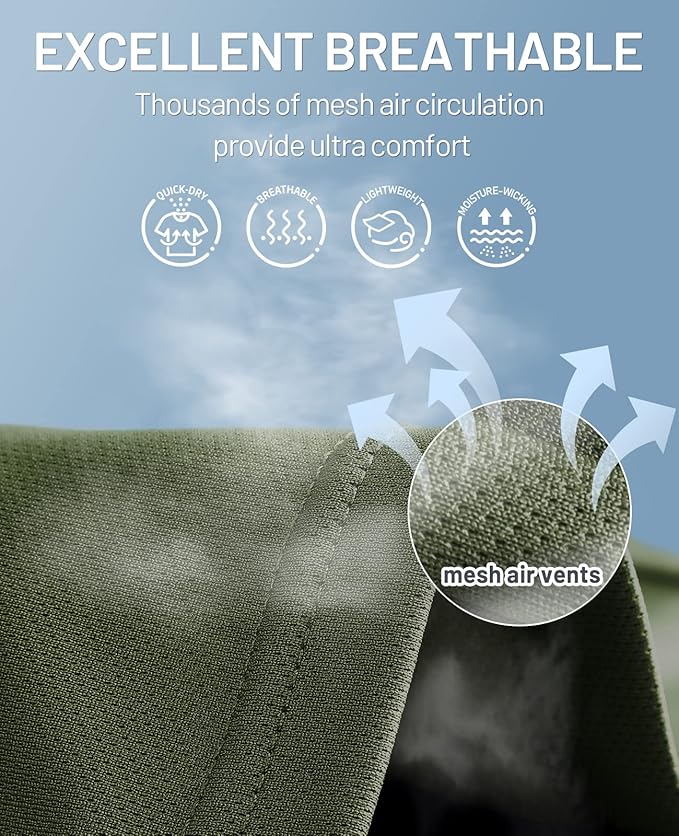 • Excellent Breathable --- Soft polyester fabric surface with thousands of mesh air circulation provides comfortable which can wick moisture quickly to keep your body cool while indoor or outdoor activities