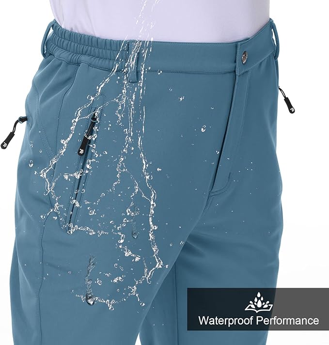 Gopune Men's Snow Ski Waterproof Softshell Pants Outdoor Windproof Warm Hiking Insulated Pants