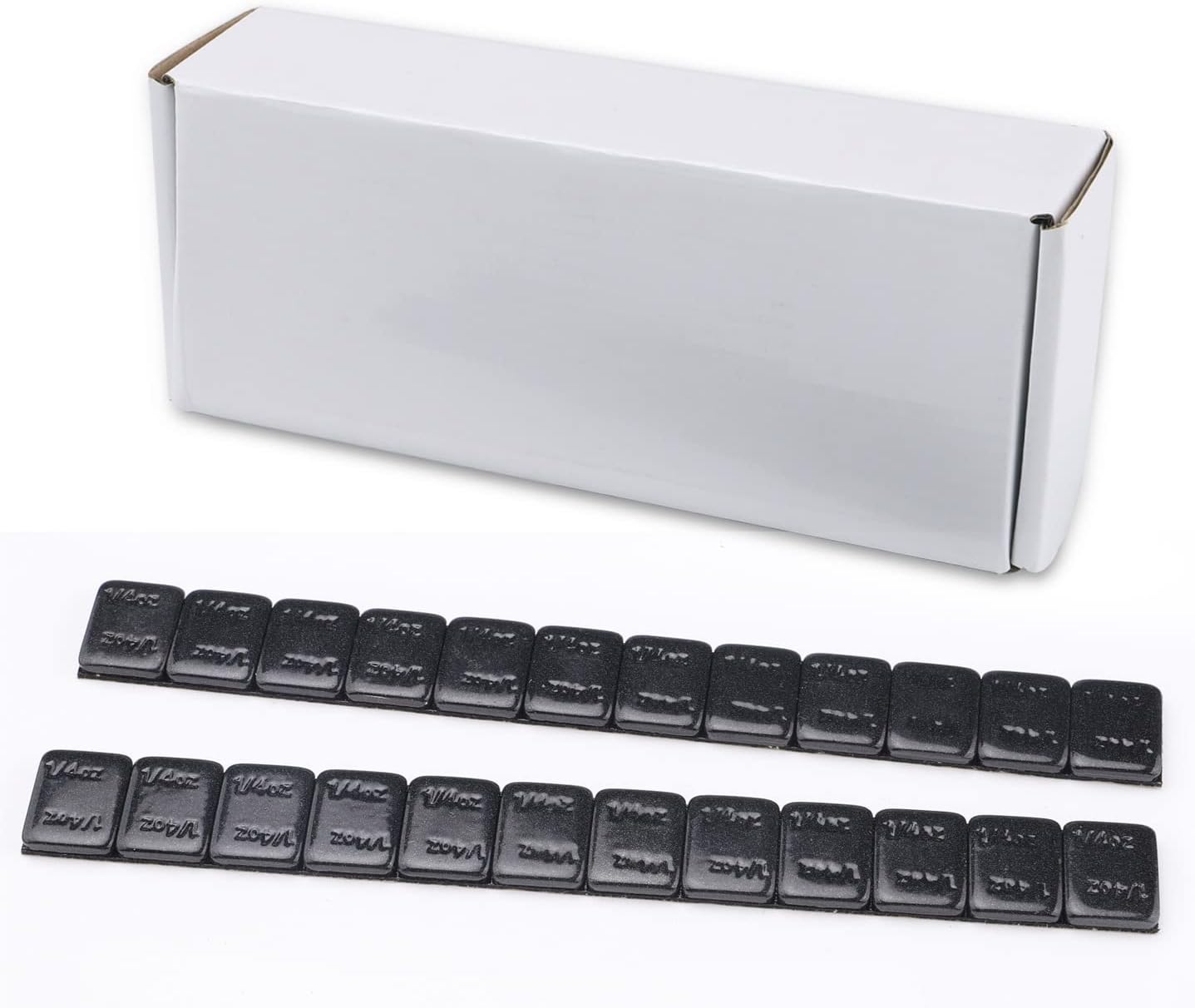 - Specification: Black wheel weights, 1/4 (0.25 oz) stick on wheel weights ,1 box=48 strips,1 strip=12 segments,576pcs,144oz. Precision segments perform an accurate balance