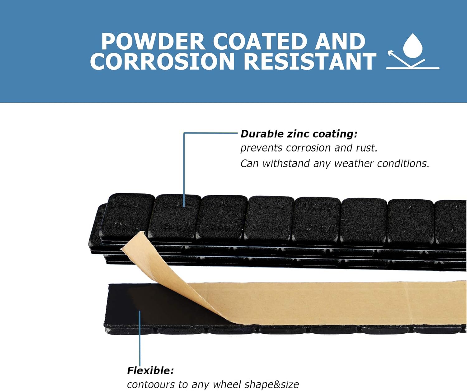 - High quality for durability: The balance are treated with a galvanized coating to prevent corrosion and rust, and can withstand any weather conditions your car normally experiences. Meanwhile, our wheel weights feature rounded corner stamping to easily contouring any wheel shape and size