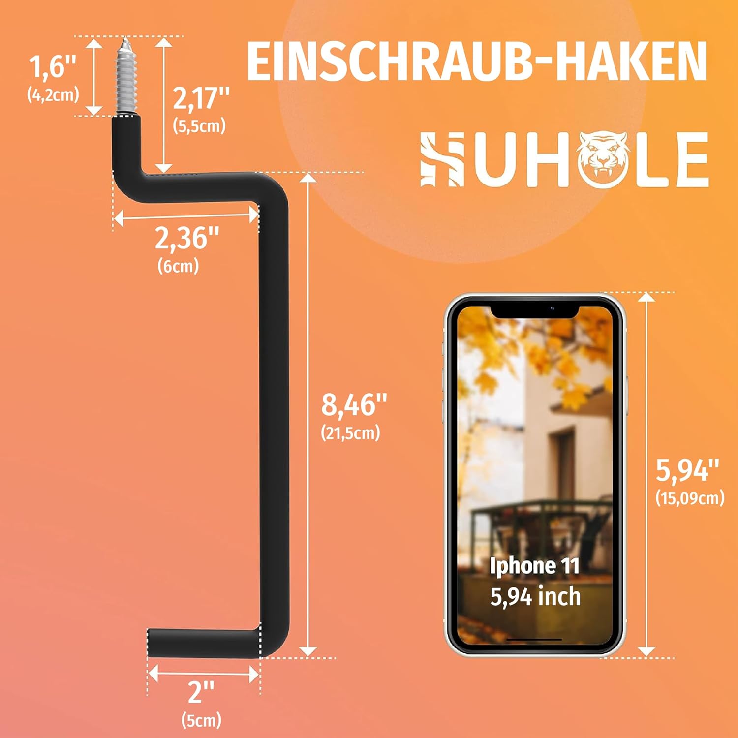 HUHOLE Ladder Hooks 4 Pack Wall Hangers - Ideal for Garage Storage: Ladder, Chair, Cord, Hose, Wheelbarrow