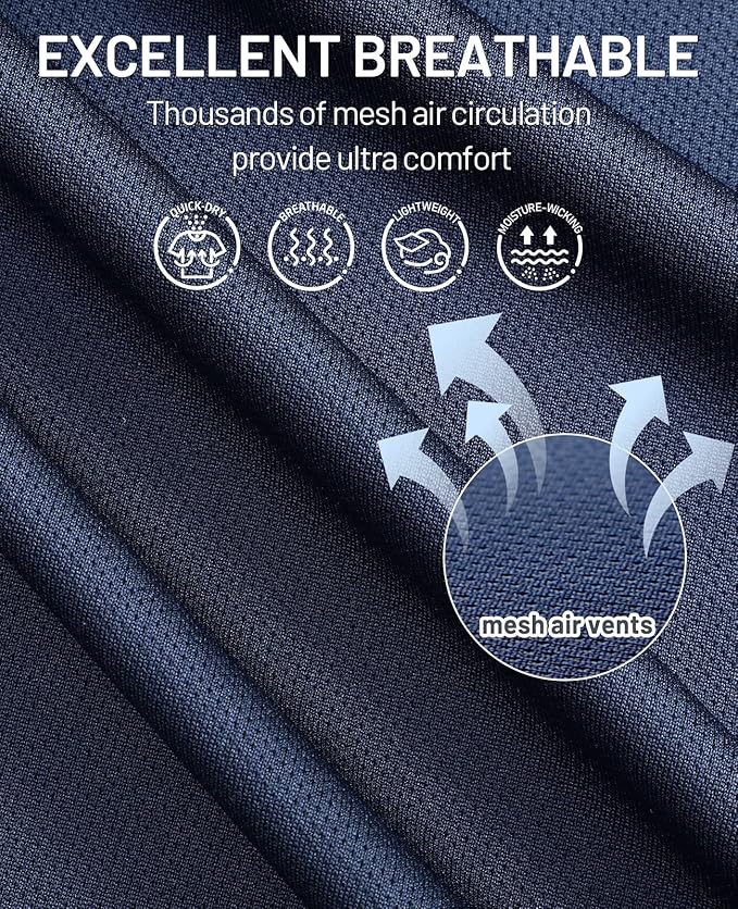 • Quick-dry & Breathable: This mens dry fit T-shirts feature superior mesh air circulation design, which works well in wicking away moisture in sweaty situation. Breathable material provide quick dry and cool without restriction and embarrassment