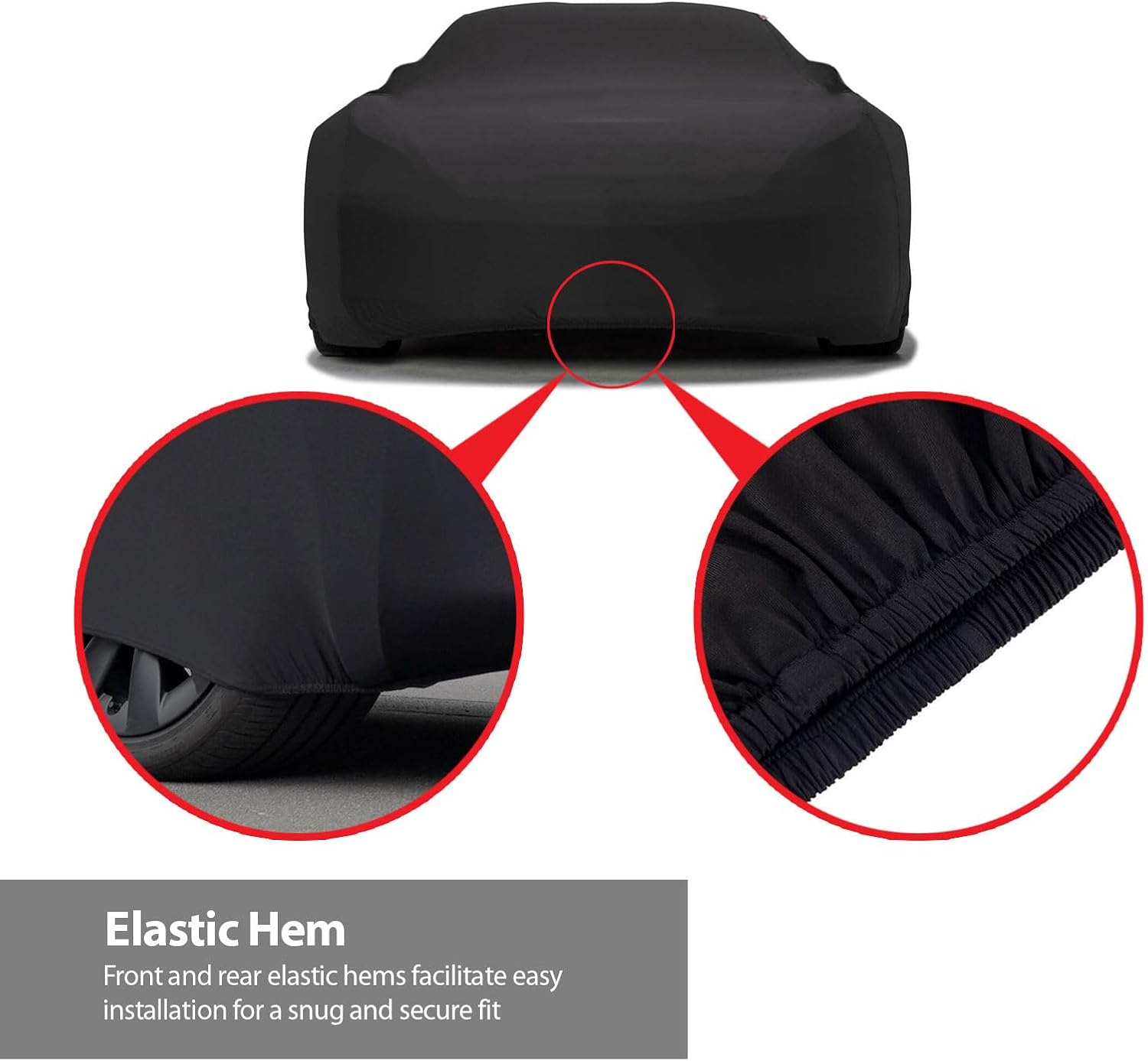 - Snug-Fit; Super soft stretchy car cover that hugs every contour on your vehicle. High-quality satin car cover with stretchy material for a custom and tight snug-fit. This cover has fewer seams and an elasticized hem for a luxurious look. Perfect for luxurious indoor protection.