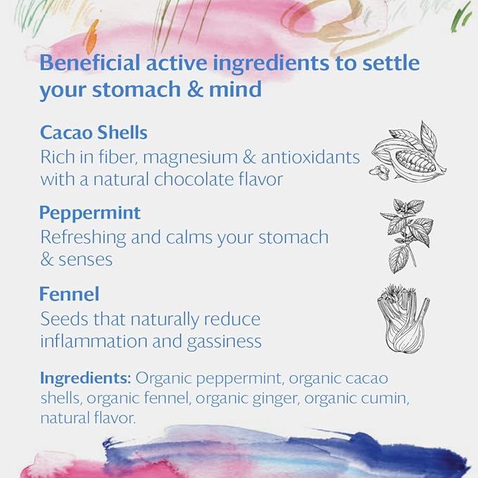 - SETTLE YOUR STOMACH AND MIND. Our Settle Wellness Tea Blend is developed to help you relax and supports healthy digestion. Refreshing peppermint is paired with cacao shells, fennel, and ginger for a flavorful tea you can enjoy anytime of day.