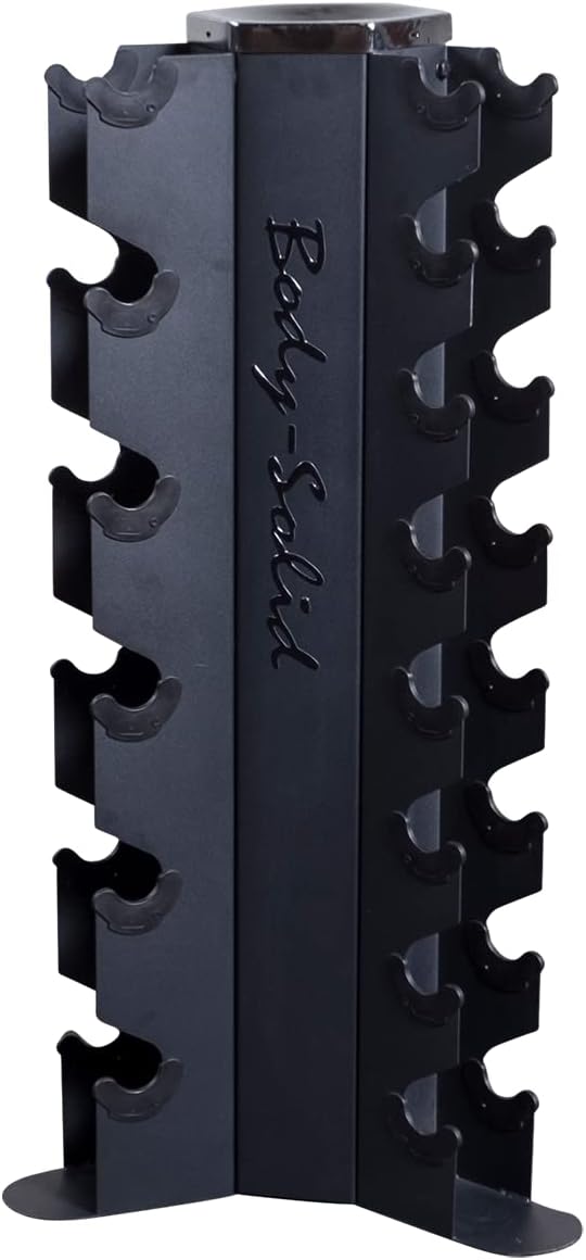 - ORGANIZE YOUR DUMBBELLS: Easily store your dumbbells with the new Body-Solid Tools 10-Pairs Vertical Dumbbell Rack. It can hold ten pairs dumbbells weighing from 5 to 50 lbs., making it a great addition to your workout area.