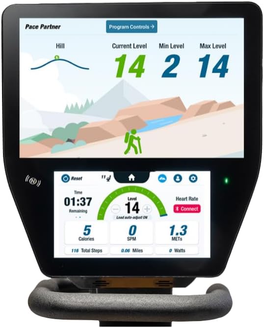 - Integrated sensor technology captures and displays power and symmetry data in real time. The dual-touchscreen console features a HD display and an intuitive user interface with engaging workout programs and easy-to-track metrics.