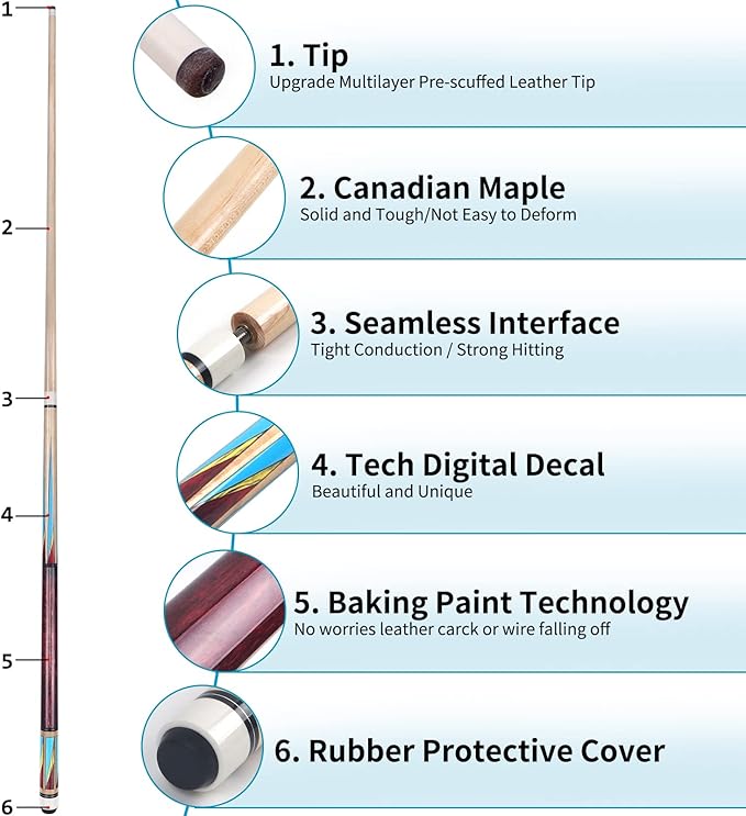 - ?…【ATTRACTIVE BAKING PAINT DESIGN??AKLOT Pool stick adopt optimized lightning maple and high-quality black metal nano baking paint technology.You do not worry about the leather crack or thred falling off.