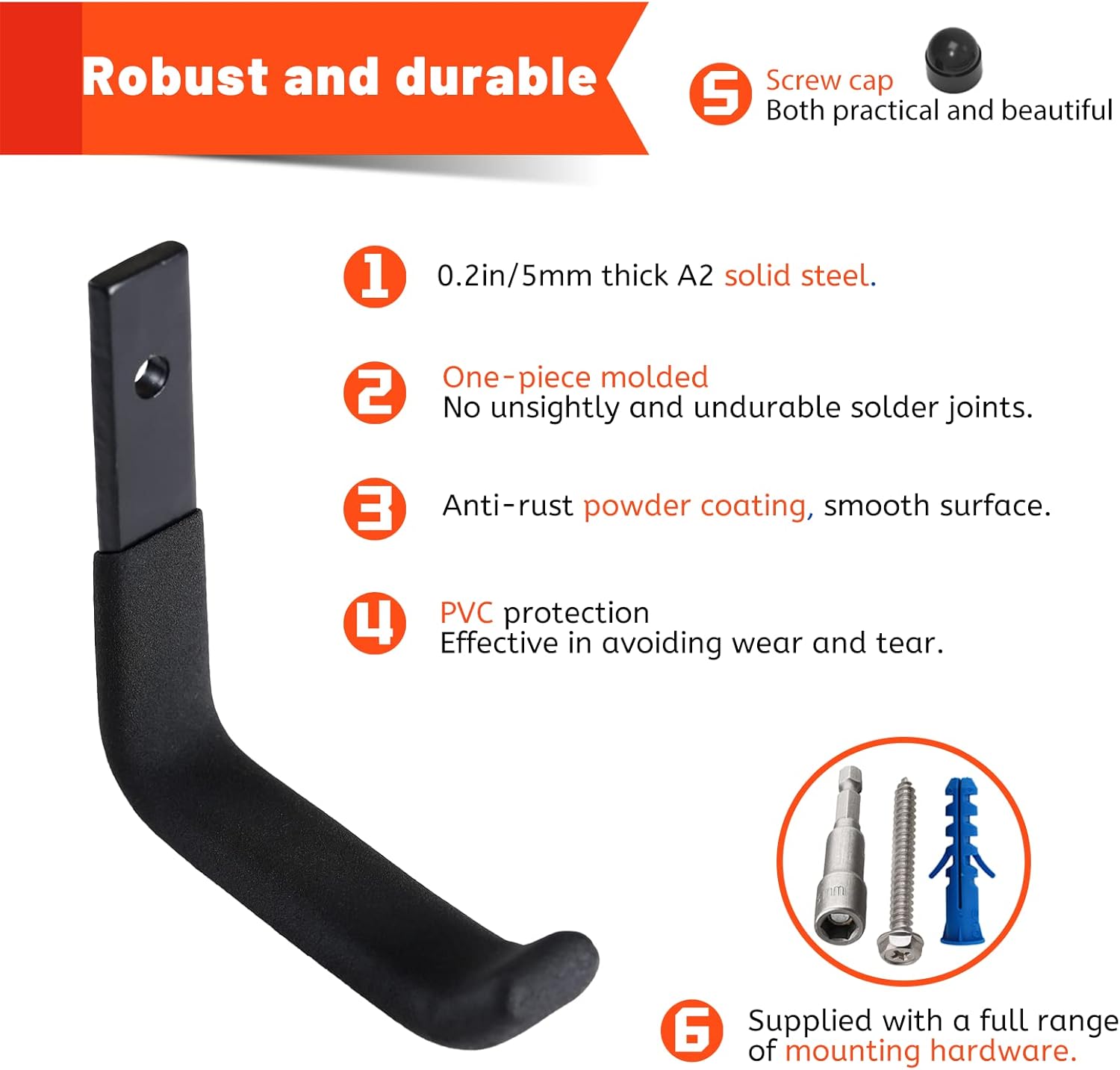 - ▶【EASY TO INSTALL】Heavy duty hooks with single-hole design for easier installation. Comes with mounting hardware including premium concrete cement anchors.