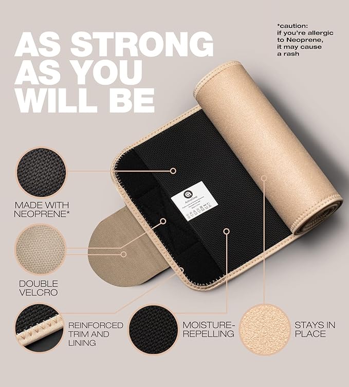 - ✅ STRONG, JUST LIKE YOU - You’ve spoken, and we heard you. Our waist trimmer has reinforced trim and lining, and double hook and loop fasteners because we want to make sure this waist trainer stays your gym buddy for a long time.