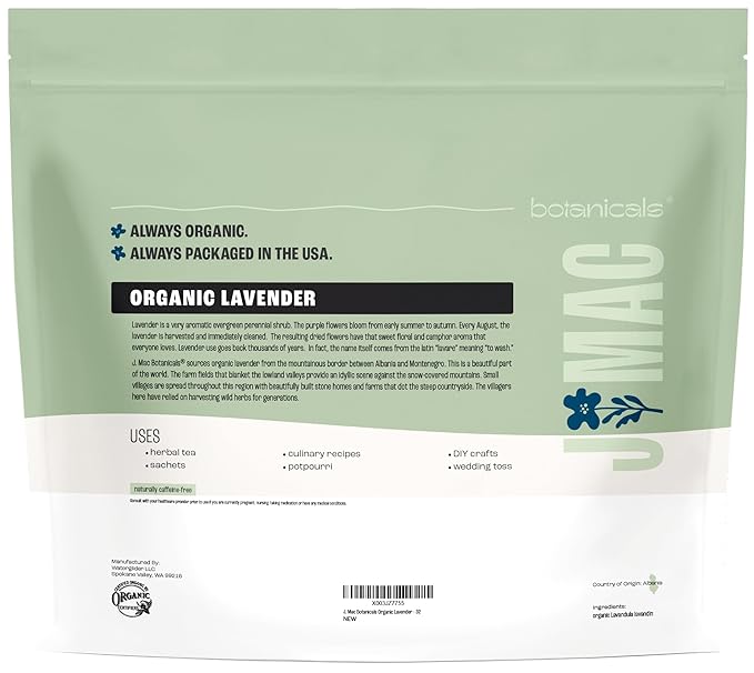 - CERTIFIED ORGANIC - Harvested naturally in the pristine, mountainous areas between Albania and Montenegro in late summer or early fall. Our organic lavender buds are collected by families who have worked in this region for generations.