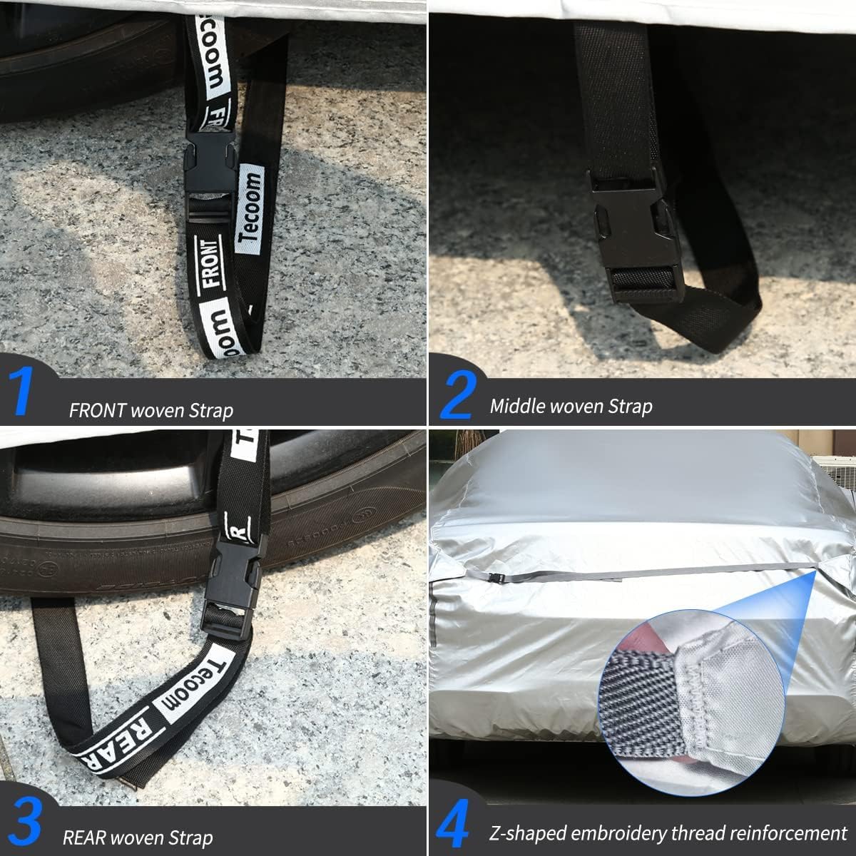 - All Weather Protection: Tecoom hard shell car covers can handle it all no matter hot sun or cold weather. The sun/waterproof coating keeps your car safe from UV rays, snow, frost, rain, sand, dust, leaves, branches and birds dropping.