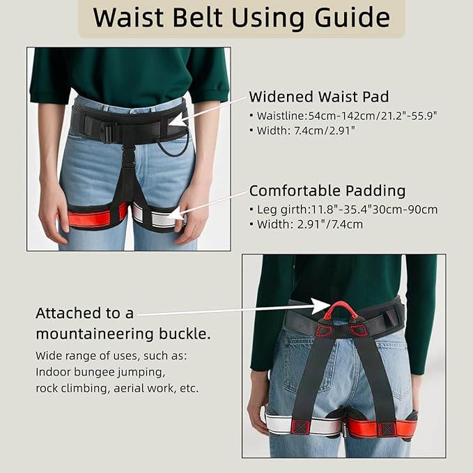 - 【6 Sizes for Choosin】Our elastic rope fitness setup comes in multiple resistance levels, with an adjustable safety harness designed for all body types: XS: 88–110 lbs S: 110–132 lbs M: 132–154 lbs L: 154–176 lbs XL: 176–198 lbs XXL: 198–220 lbs Note: Suitable for ceilings/floors 2.5–3.8m (8.2–12.5 ft) in height