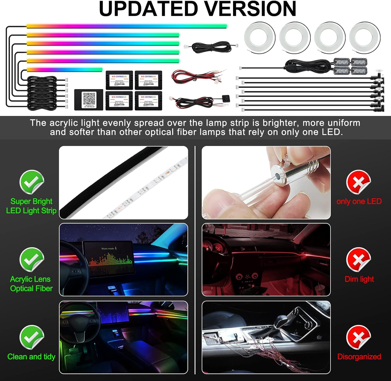 Dreamcolor Acrylic Interior Car LED Strip Light with Wireless APP, RGB 22 in 1 with 175 inches 593 LEDs Fiber Optic Ambient Lighting Kits, 16 Million Colors Sound Active Function Car Neon Lights