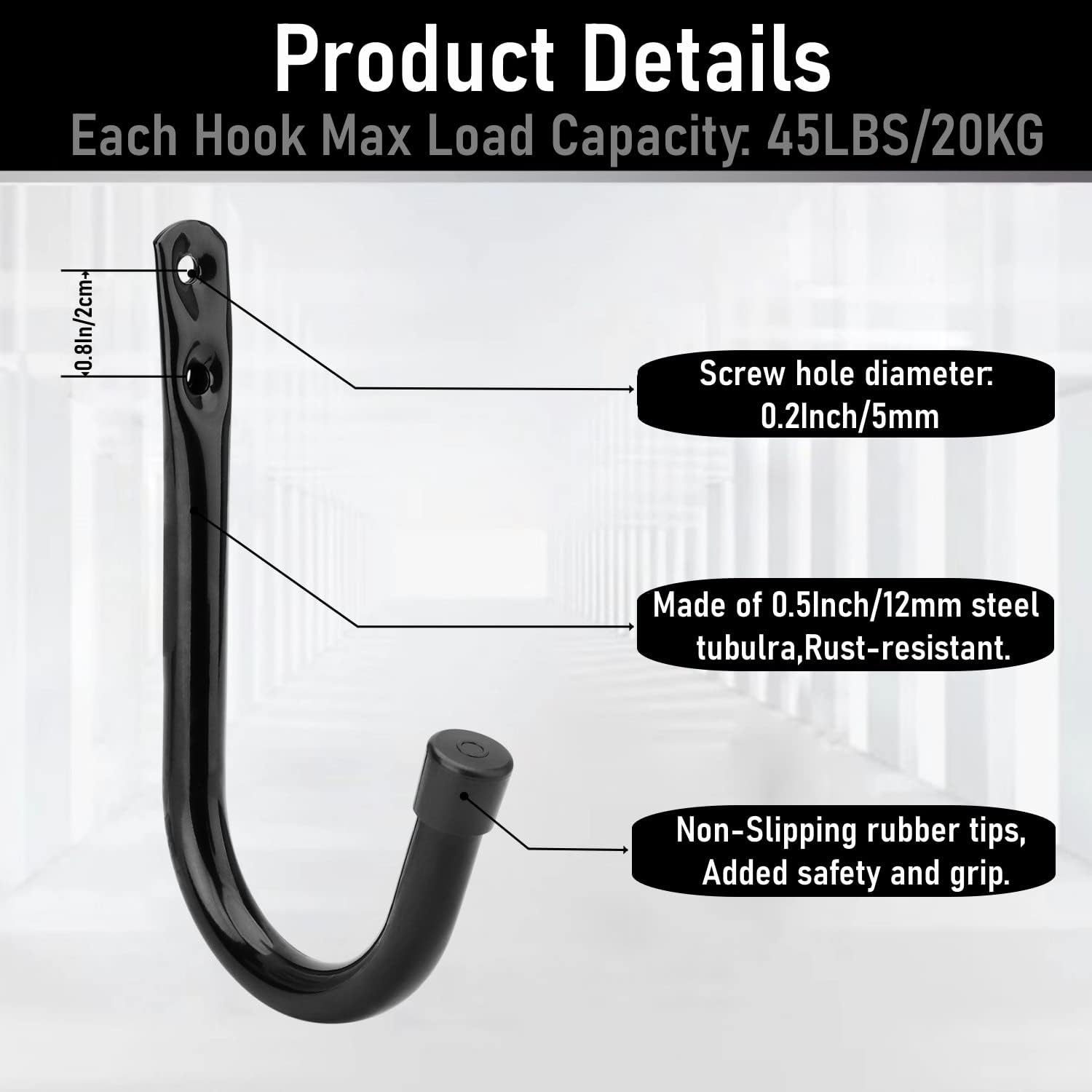 - Heavy Duty Material: Utility Hooks made of 0.5in/16mm tubular metal structure, each hook holds up to 45lbs/20KG. Use it to say goodbye to the messy garage.