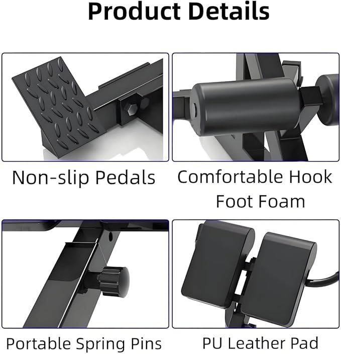 - Adjustability-- The 8-stage back length of this reverse hyperextension machine and the cushion gap can be adjusted to facilitate the use of people of different heights. Soft non-slip cushions, rotatable foam leg rollers and wide non-slip handles to achieve a comfortable workout for you.The handles integrated dip bars help you focus on your upper body.