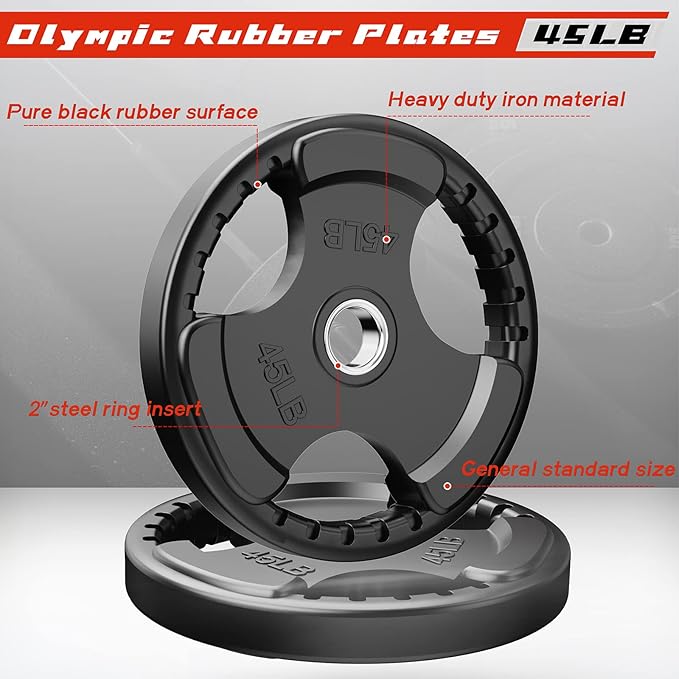 - SIZE- 315lb set includes 2X2.5lb,4X5lb,4X10lb,2X35lb,4X45lb. RitFit rubber plate can apply to all the 2 inch Olympic bars.