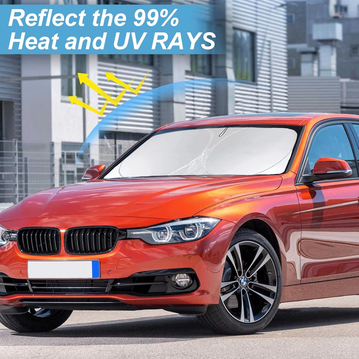 - 【BLOCKS UV RAYS】With this windshield sun protector you can protect your auto interior materials, leather, vinyl, plastics, fabrics, and carpets against the damaging effects of UV rays and prevent your car upholstery from fading.