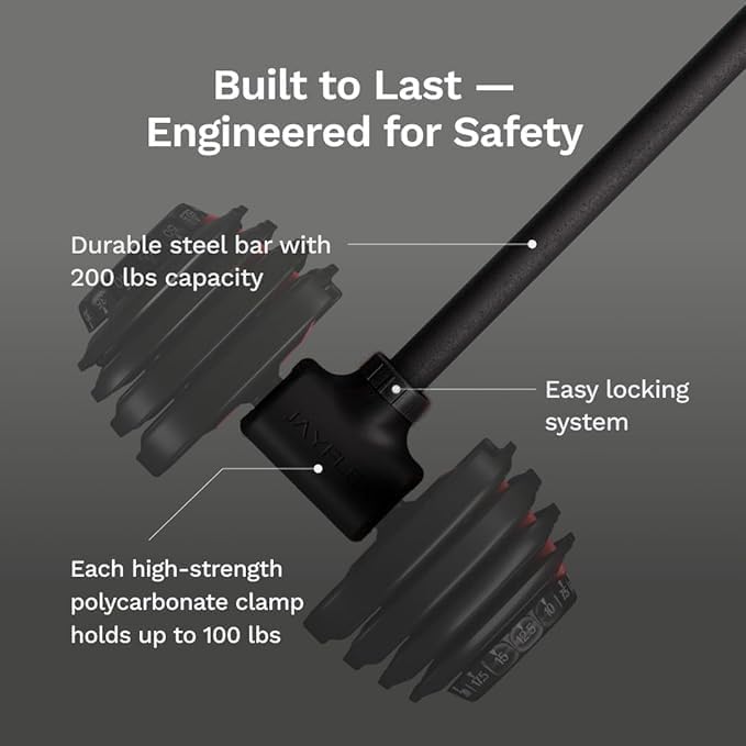 Jayflex Hyperbell Dumbbell Converter - Convert Dumbbells to Barbell Set and Kettlebell for Home Fitness - Adjustable & Up to 200 lb Capacity Weight Barbell for Weight Lifting