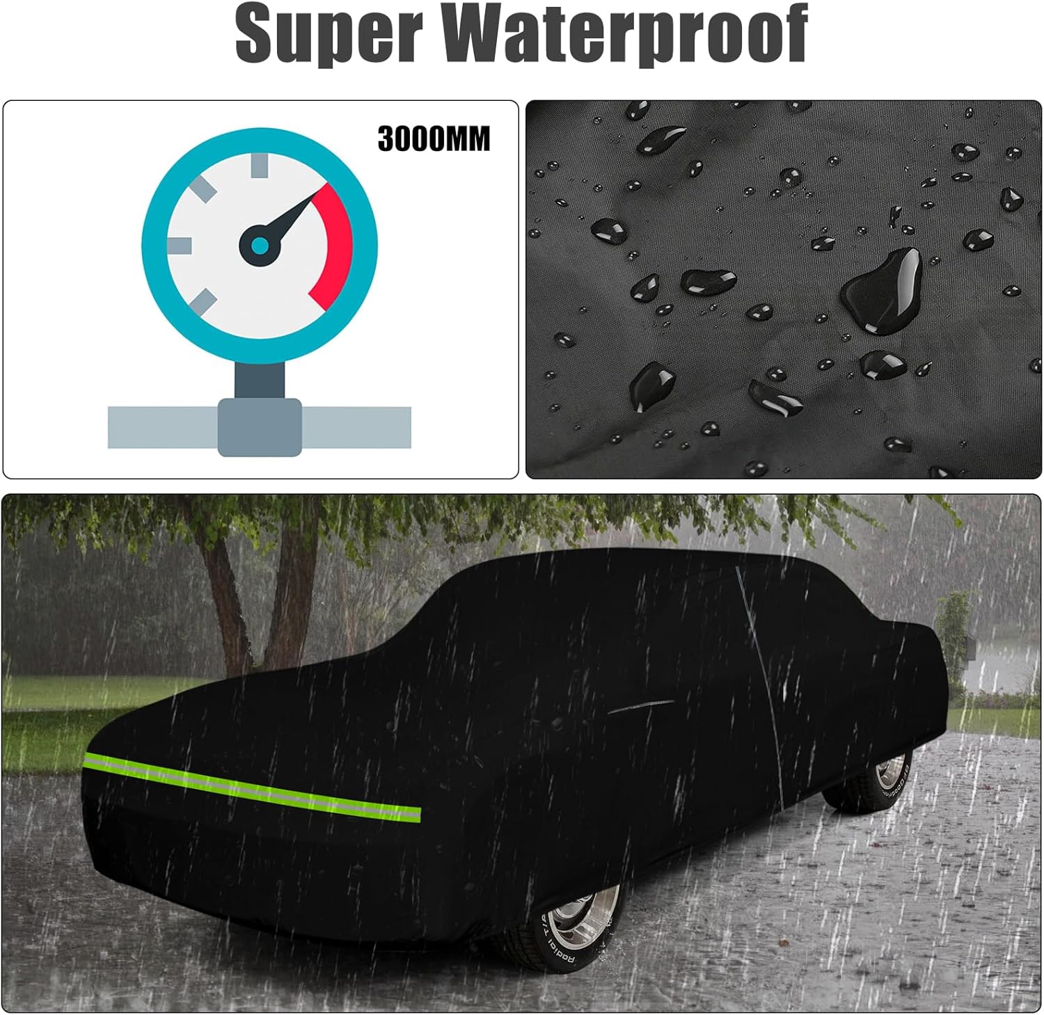- Premium Material More Waterproof: Made of oxford black high-density material, added PU waterproof and UV resistant coating, inner cotton, which can protect your car from water seeping, and no worries that the sun's UV rays in the summer